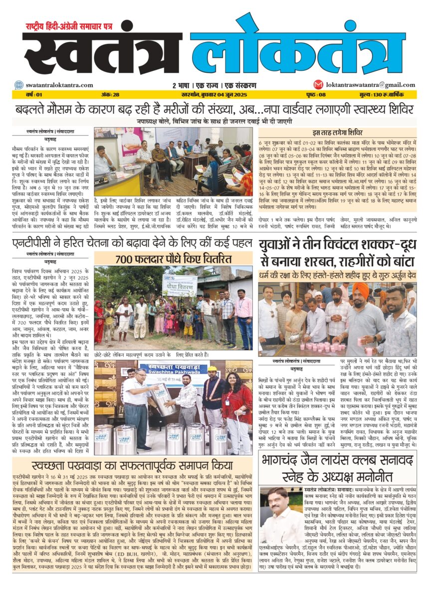 E-PAPER 04 JUNE EPAPER June 4, 2025 6:16 pm By news 0 Min Read TAGGED:BARWAHA Share This Article Facebook Whatsapp Whatsapp Email Copy Link Leave a Comment Leave a Reply Cancel replyYour email address will not be published. Required fields are marked *Comment * Name * Email * Website Save my name, email, and website in this browser for the next time I comment. POPULAR मनोरंजन एनटीपीसी द्वारा जिला स्तरीय कबड्डी टूर्नामेंट का आयोजन राष्ट्रीय एनटीपीसी खरगोन में गणतंत्र दिवस समारोह राष्ट्रीय एनटीपीसी खरगोन में “हिन्दी सृजन गोष्ठी” का आयोजन राजनीति नपाध्यक्ष ने दुकानदारों को प्रदान की लीज डीड Follow US 800kFollowersLike45.6kFollowersFollow564.3kFollowersFollow1.28MSubscribersSubscribe - Advertisement -