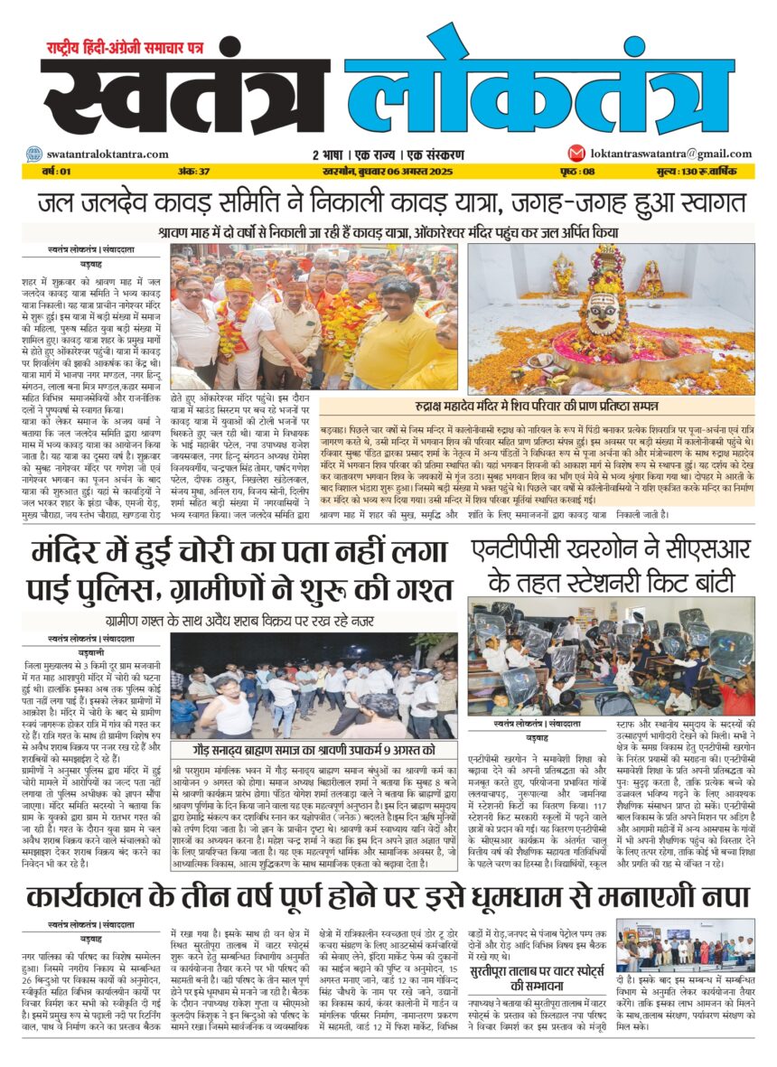 E-PAPER 06 AGUST August 9, 2025 8:01 pm By news 0 Min Read TAGGED:BARWAHA Share This Article Facebook Whatsapp Whatsapp Email Copy Link Leave a Comment Leave a Reply Cancel replyYour email address will not be published. Required fields are marked *Comment * Name * Email * Website Save my name, email, and website in this browser for the next time I comment. POPULAR मनोरंजन एनटीपीसी द्वारा जिला स्तरीय कबड्डी टूर्नामेंट का आयोजन राष्ट्रीय एनटीपीसी खरगोन में गणतंत्र दिवस समारोह राष्ट्रीय एनटीपीसी खरगोन में “हिन्दी सृजन गोष्ठी” का आयोजन राजनीति नपाध्यक्ष ने दुकानदारों को प्रदान की लीज डीड Follow US 800kFollowersLike45.6kFollowersFollow564.3kFollowersFollow1.28MSubscribersSubscribe - Advertisement -