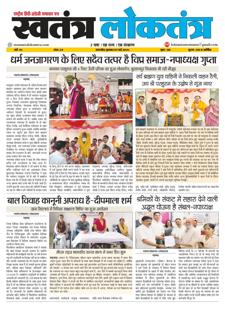 E-PAPER EPAPER 07 MAY May 8, 2025 12:47 am By news 0 Min Read TAGGED:BARWAHA Share This Article Facebook Whatsapp Whatsapp Email Copy Link Leave a Comment Leave a Reply Cancel replyYour email address will not be published. Required fields are marked *Comment * Name * Email * Website Save my name, email, and website in this browser for the next time I comment. POPULAR मनोरंजन एनटीपीसी द्वारा जिला स्तरीय कबड्डी टूर्नामेंट का आयोजन राष्ट्रीय एनटीपीसी खरगोन में गणतंत्र दिवस समारोह राष्ट्रीय एनटीपीसी खरगोन में “हिन्दी सृजन गोष्ठी” का आयोजन राजनीति नपाध्यक्ष ने दुकानदारों को प्रदान की लीज डीड Follow US 800kFollowersLike45.6kFollowersFollow564.3kFollowersFollow1.28MSubscribersSubscribe - Advertisement -
