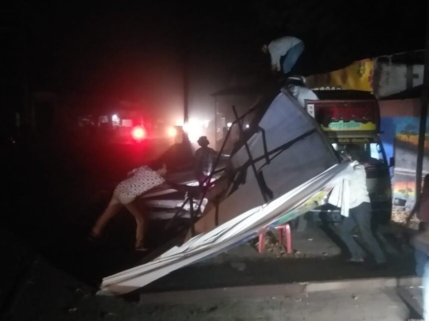 स्वतंत्र लोकतंत्र। बड़वानी। मौसम विभाग के अनुमान के मुताबिक सोमवार रात्रि 8 बजे मौसम बदला और अचानक तेज धूल भरी आंधियां चलने लगी। करीब 2 घंटे तक तेज आंधी चलने से शहर में कई जगह अस्त व्यस्त स्थिति देखने को मिली। शहर में कई जगह होर्डिंग और बैनर पोस्टर कागजक़ी तरह हवा में उड़ते नजर आए। शहर में चहुओर जगह-जगह पेड़ों की शाखाएं बिखरी नजर आई। रात्रि 8 बजे तेज आंधी हवा चलने के साथ ही बाजार भी बंद हो गए। रात्रि 8:30 बजे से गुल हुई बिजली रात 12.15 बजे तक बंद है। हालांकि इस दौरान कई क्षेत्रों में विद्युत प्रदाय सुचारु किया गया। धूल भरी आंधी से शहर के कारंजा चौपाटी, झंडा चौक, बस स्टैंड, कोर्ट चौराहा, पाला बाजार आदि स्थानों पर लगने वाली अस्थाई दुकानों के तंबू भी उड़ गए। हालांकि फिलहाल कोई बड़ी नुकसानी या जनहानि क़ी जानकारी सामने नहीं आई है।